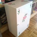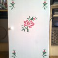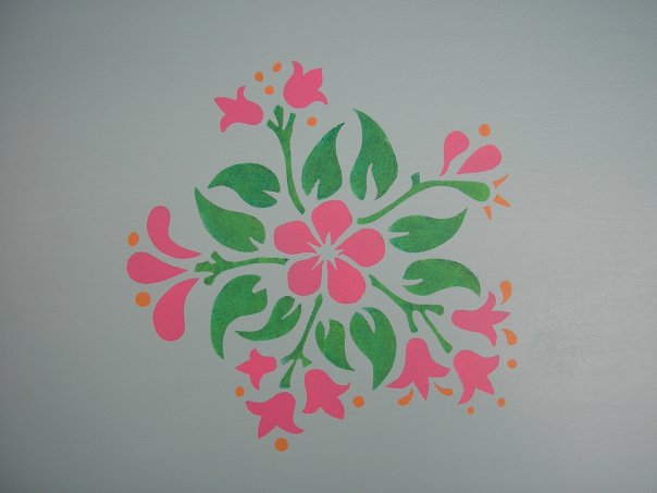 Za farbanje je korišćena bela akrilna boja. Sledeći korak su ornamenti u ovom slučaju ove stilizovane francuske ružice. Da kažem nešto i o tome, crtež sam preneo indigom ne predviđena mesta da bi bili identični motivi, to nekako pojača dojam, deluje geometrijski savršeno. Dakle preneo sam crtež olovkom, zatim krenuo da radim bojom sloj po sloj, od tamnijih slojeva ka svetlijim. Na nesreću nisam fotkao detaljno procese, to ću u nekom sledećem 'projektu'..