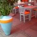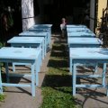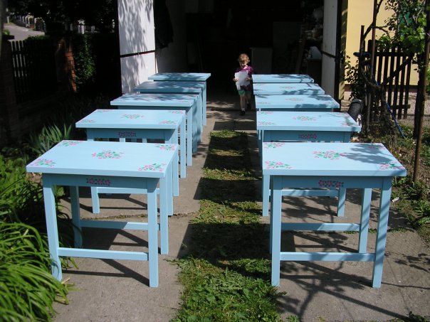 Dodao bih takođe i šare ponaosob koje su našle mesto u ovom obimnom poslu, koji je trajao 4-5 vikenada vezanih (znači desetak dana krvavog rada od jutra do sutra, jer smo imali rok da bi bašta funkcionisala), mislim konkretno na smirglanje, zatim, nanošenje temeljne, zatim opet šmirglanje, pa farbanje i na kraju motivi, za koje smo napravili šablon,i svakako lakiranje, da bi sve bilo kao celina moćnije, da motivi ne budu različite veličine i slično...
