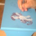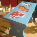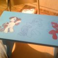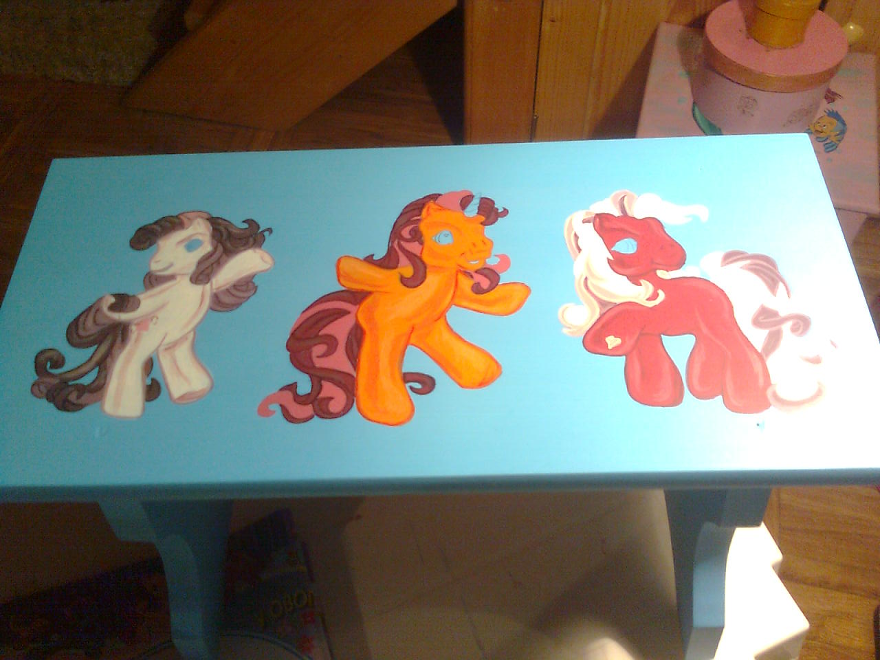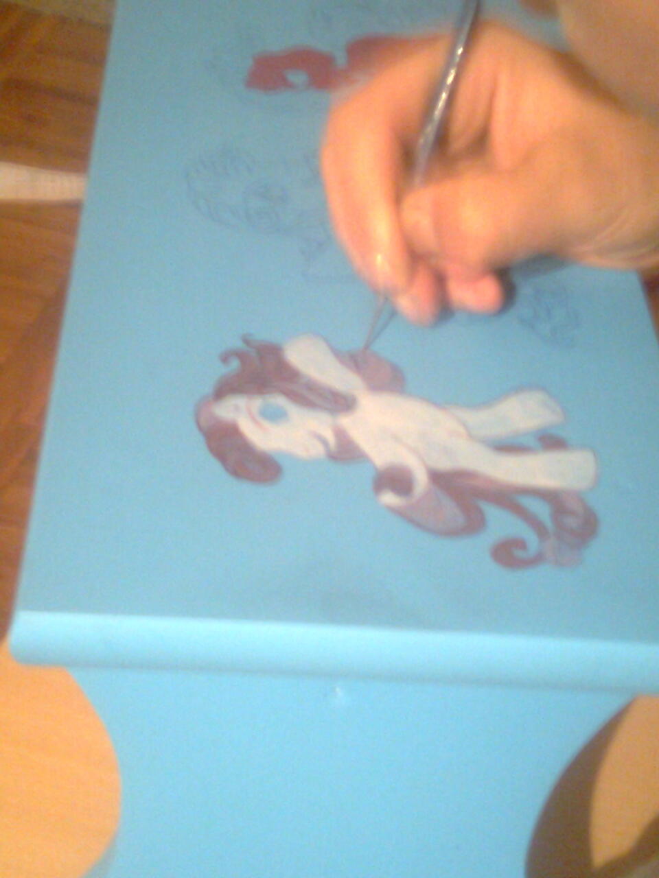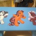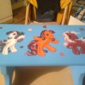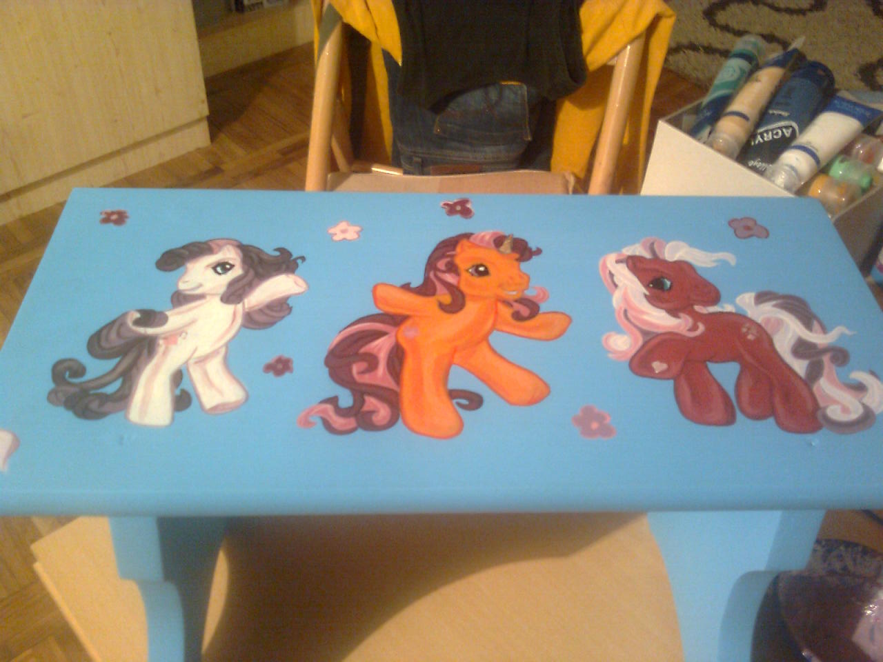 Stolicicice i hoklice su veoma dopadljive za slikanje, jer im je format nekako potaman, i meni lično su baš na ruku. Ova hoklica je osmišljena, tj. poručena po motivima ''Mali moj poni''. Ja u stvari volim stripovane varijente, disney junake, pa novine princeze i mali moj poni, kao omiljene među devojčicama.