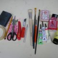 Dalje imamo razne skalpele, oštrije nožiće, nezaobilazni su i lenjiri, špakne, posudice razne za boju i lepak, dosta starih novina, traka za oblepljivanje, paus papir, kao odličan za izradu šablona raznoraznih (stenciling), pluta za pečate (stamping), sve u svemu dovijanje je svakako neophodno, svaka tehnika ima svoje zanimljivosti i tajnice, koje ja na primer i ne krijem, jer kreativnost i talenat ne može da se ukrade, može u maloj meri, no ono što nas goni napred je od presudnog značaja...