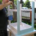 Medijapan je poručen u pločama ne ofarban. Redom operacije su se ređale:sklapanje (šrafovima, jer mi je ta tehnika draža od tiplovanja ), zatim nanošenje temeljne boje, koja je posle kraćeg sušenja išmirglana da bi podloga bila glatka za farbanje. Koristio sam ručnu šlajfericu prvenstveno zbog brzine iliti uštede vremena.