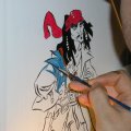 Ovde je zanimljivo dodati, da na početku kod prenošenj crteža, prvo pošto se prebaci olovkom, prvi korak je podebljanja bojom, uglavnom crnom kod animiranih i stripovanih junaka, ima opcija kada su spoljne linije u tamnijoj nijansa od samog motiva koji se radi, a kod te varijante bitno je imati više posudica sa poklopcem, kada se zamute boje mogu da stoje, jer se ne može završiti za jedan dan, a teško je nekad pogoditi neke nijanse, a i ušteda je u boji, manje se baca. Kod opcije crnog podebljanja crteža je jednostavnije i često upečatljivije zbog mnoštva detalja pogotovo kod raznoraznih animacija.